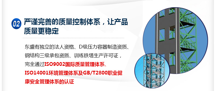 河北衡水東盛鐵塔有限公司,是生產訓練塔的專業廠家,始建于1972年,占地面積85000平方米,建筑面積8386平方米。隨著我國改革開放和通信事業蓬勃發展,本公司為設計、制造、安裝各種造型的訓練塔、瞭望塔、廣播電視塔、微波通信塔、移動通信塔、桅桿拉線塔、電力架線塔、大型無縫鋼管塔,電力桿塔、樓頂鋁合金塔、樓頂不銹鋼裝飾塔,我公司還生產斜放交叉梁系列網架、鋼結構工程。微波線路的設計及天饋線安裝。我公司現已發展為擁有職工685人,工程技術管理人員78人,年產量達到18000噸以上。本公司成立以來承建過全國各省市、自治區的國防、廣播電視、移動、電力、水利、公安交警、武警等多條微波通信干線工程:如遼寧省撫順市人民防空辦公室55米組...
